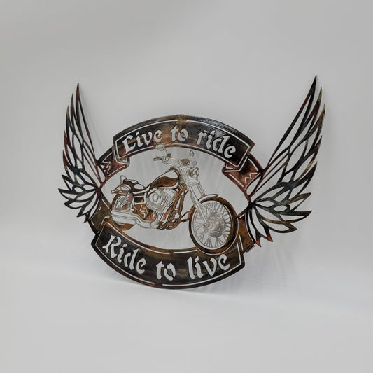 Live To Ride Ride To Live Metal Motorcycle Wall Hanging